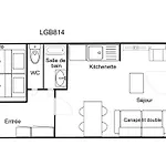Daire 31 m²lik olup 1 yatak odası, 1 banyo ve tam donanımlı mutfağa sahiptir.